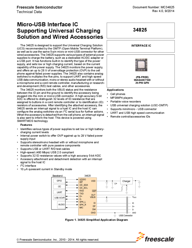 MC34825 MC34825, Micro-USB Interface IC Supporting Universal Charging Solution and...