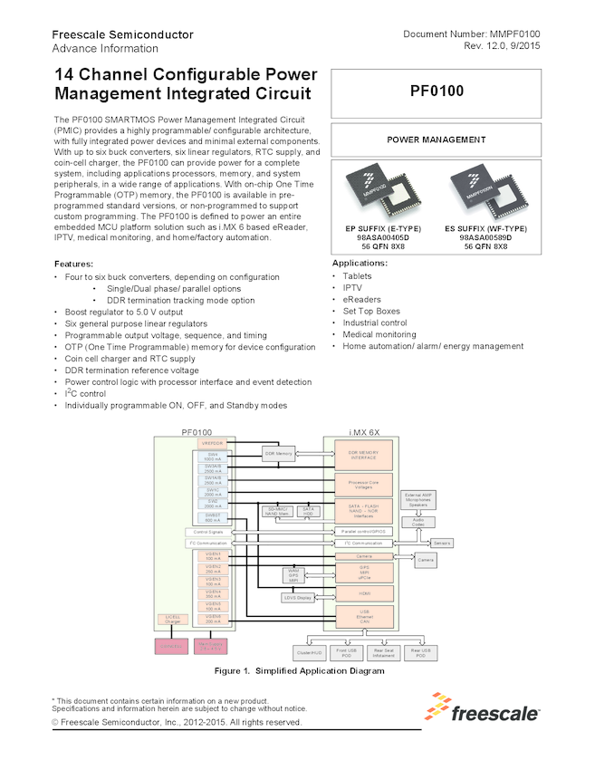 MMPF0100, 14 Channel Configurable Power Management Integrated Circuit