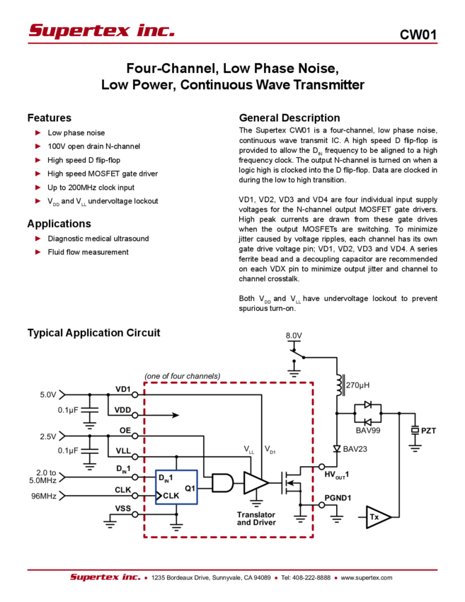 CW01 Datasheet - Four-Channel, Low Phase Noise, Low Power, Continuous Wave Trans (01/17/2012)