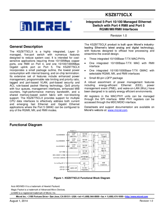 KSZ8775 CLX - Integrated 5-Port 10/100 Managed Ethernet Switch (11/09/2015)