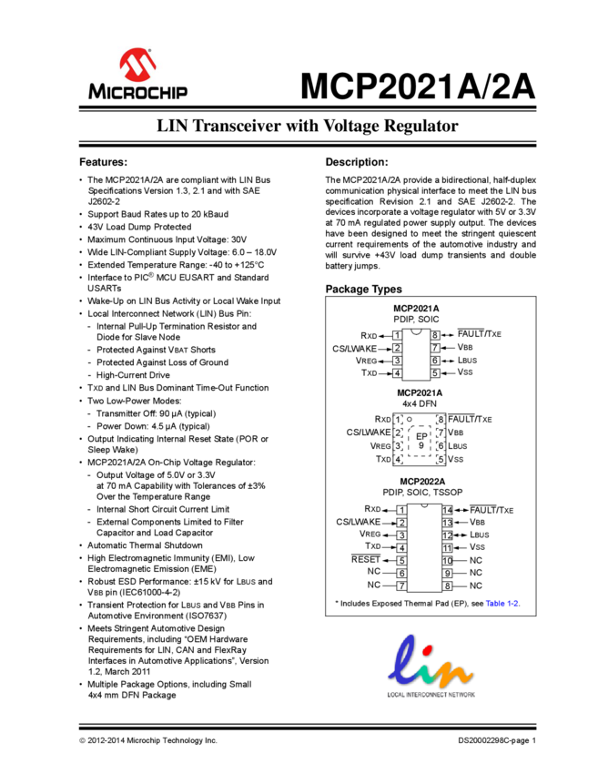 MCP2021A/MCP2022A Data Sheet (08/07/2014)