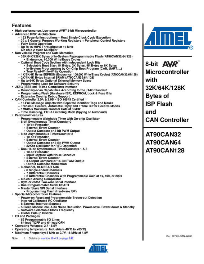 128k Flash, 4k SRAM, 4k EEPROM, JTAG, CAN, TQFP64