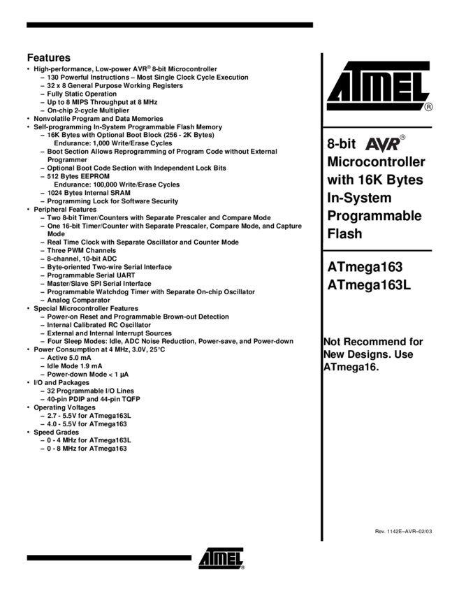 ATMEGA163-A TQFP44, 16k Flash, 1k SRAM, 512B EEPROM