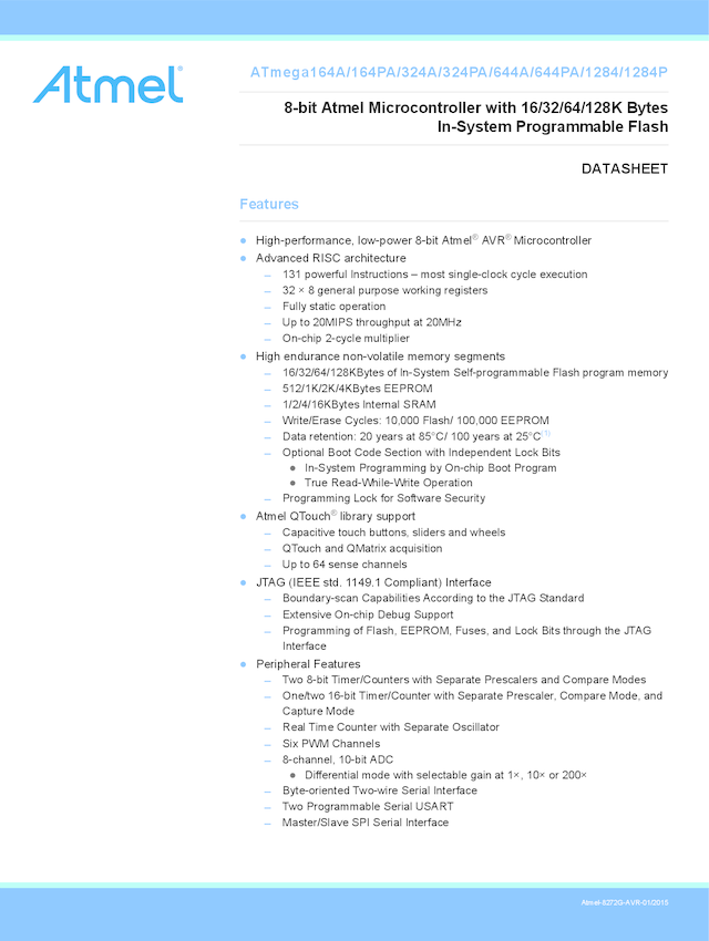 - ATMEGA1284-A, ATMEGA1284-M, ATMEGA1284-P, ATMEGA1284P-A, ATMEGA1284P-M, ATMEGA1284P-P, ATMEGA164A-A, ATMEGA164A-M, ATMEGA164A-P, ATMEGA164PA-A, ATMEGA164PA-M, ATMEGA164PA-P, ATMEGA324A-A, ATMEGA324A-M, ATMEGA324A-P, ATMEGA324PA-A, ATMEGA324PA-M, ATMEGA324PA-P, ATMEGA644A-A, ATMEGA644A-M, ATMEGA644A-P, ATMEGA644PA-M, ATMEGA644PA-P