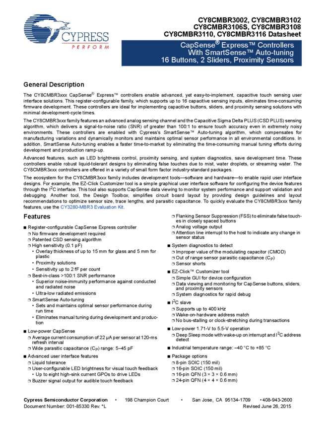 CY8CMBR3102, CY8CMBR3106S, CY8CMBR3108, CY8CMBR3110, CY8CMBR3116