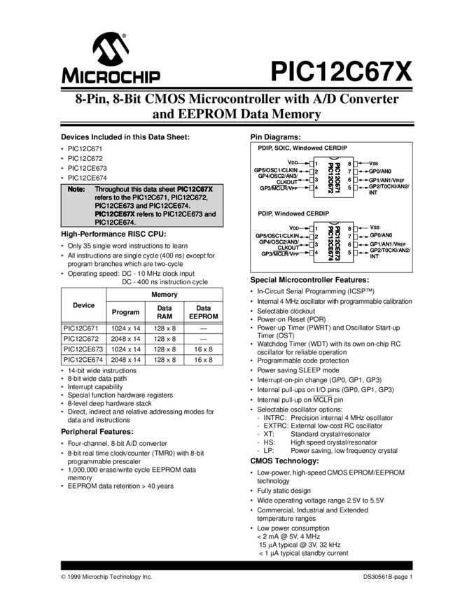 PIC12C671-I/P, PIC12C671-I/SN, PIC12C672-I/JW, PIC12C672-I/P, PIC12C672-I/SN, PIC12CE673-I/JW, PIC12CE673-I/P, PIC12CE674-I/JW, PIC12CE674-I/P