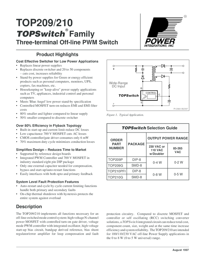 TOP210G TOPSwitch Family, 2W Max Output Power