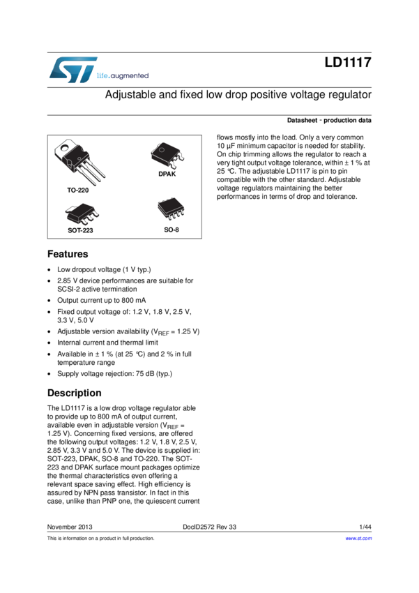 LD1117S12CTR, LD1117S12TR, LD1117S18CTR, LD1117S18TR, LD1117S25CTR, LD1117S25TR, LD1117S33TR, LD1117S50CTR, LD1117S50TR