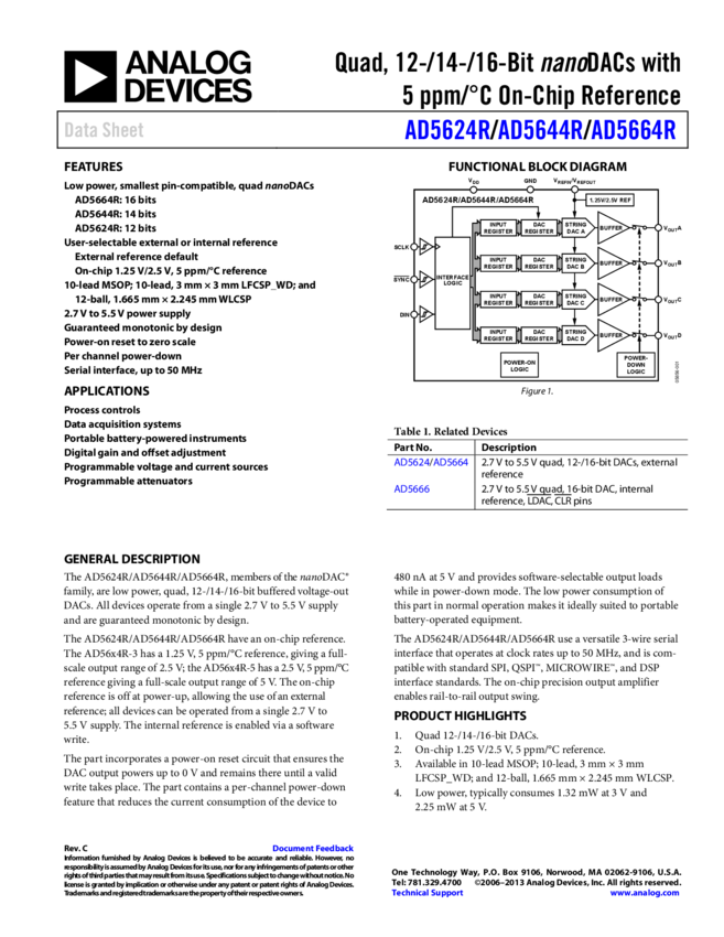 AD5664R Quad,12-Bit DAC® with 5ppm/°C On-Chip Reference