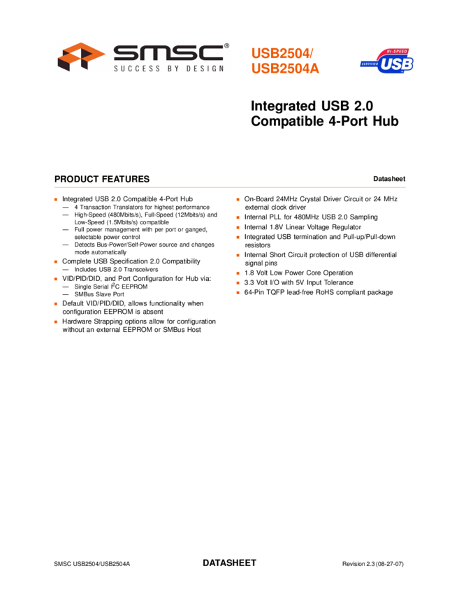 USB2504 Integrated USB 2.0 Compatible 4-Port Hub Data Sheet