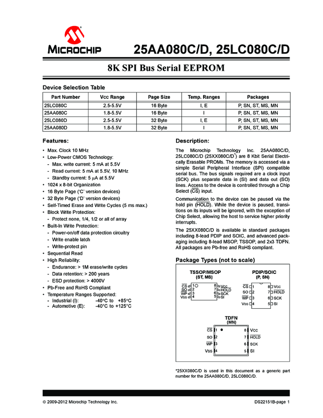 25AA080C/D, 25LC080C/D 8K SPI Bus Serial EEPROM Data Sheet (12/05/2012)