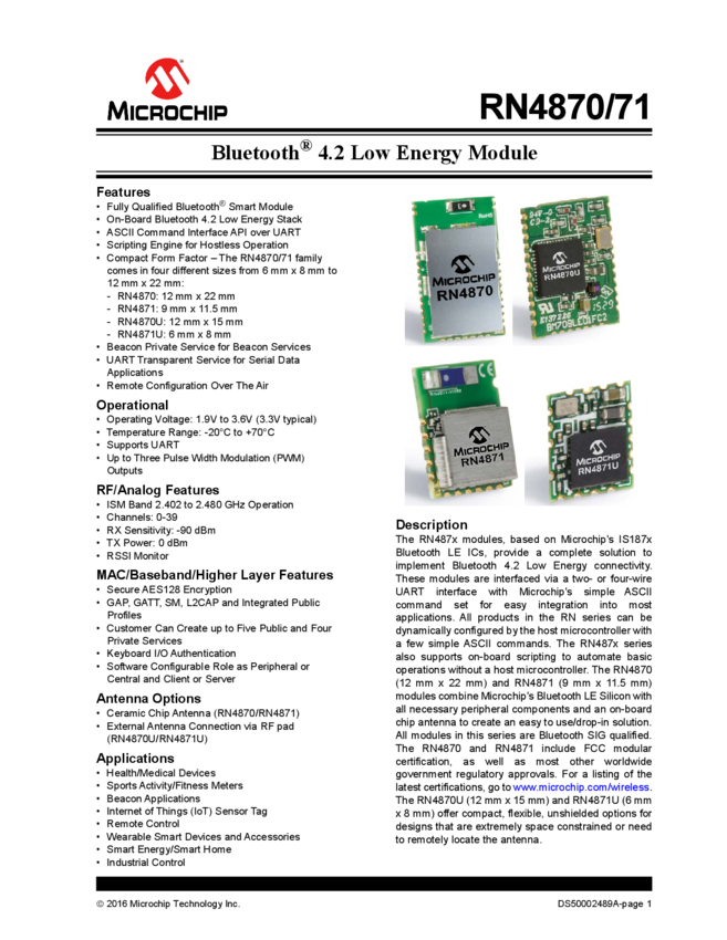 RN4871 RN4870/71 Bluetooth 4.2 Low Energy Module Data Sheet