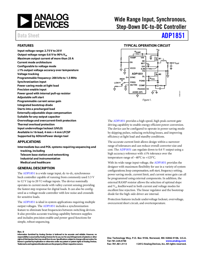 ADP1851 Wide Range Input, Synchronous, Step-Down DC-to-DC Controller