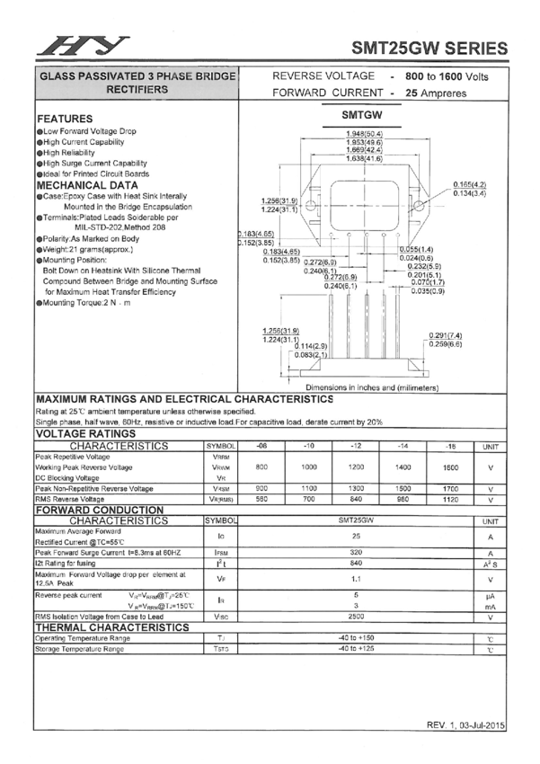 SMT2510GW Mostek prostowniczy 3-fazowy 1000V/25A