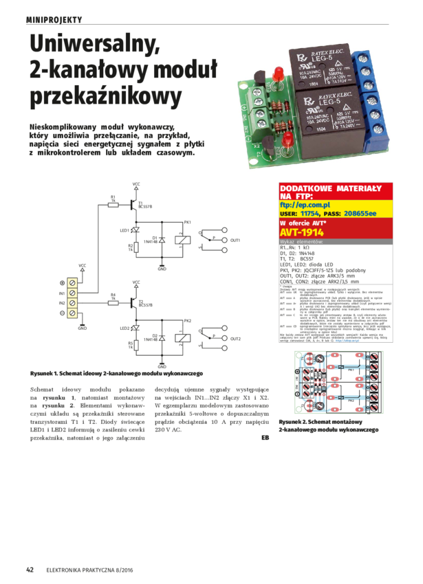 AVT1914 Uniwersalny 2-kanałowy moduł przekaźnikowy