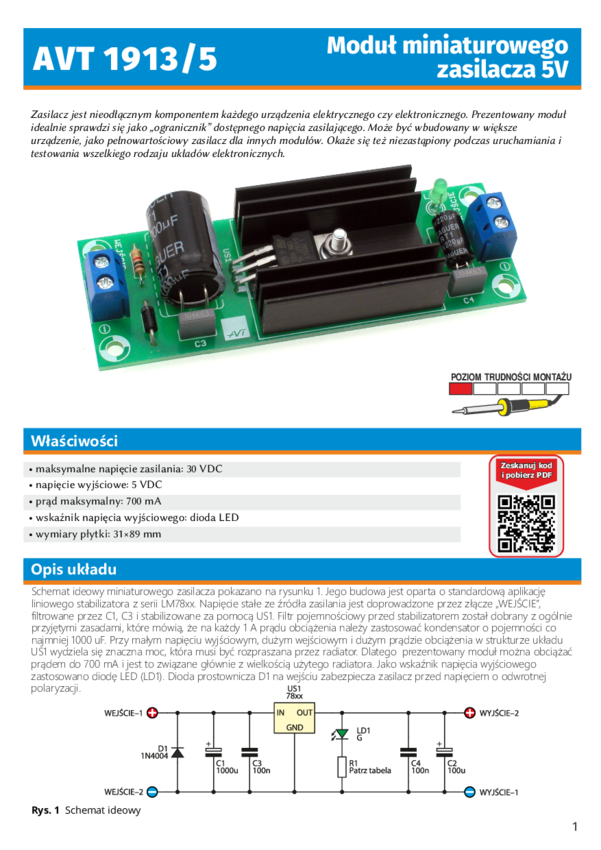 AVT1913 AVT1913/5 Moduł miniaturowego zasilacza 5V