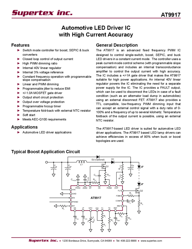 AT9917 Datasheet - Automotive LED Driver IC with High Current Accuracy