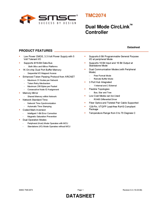 TMC2074 Dual Mode CircLink Controller Data Sheet