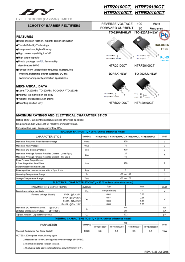 HTRF20100CT Dioda prostownicza Schottky 100V/20A