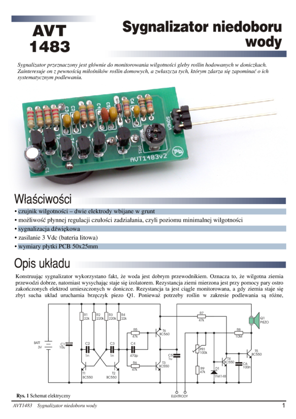AVT1733 AVT1483 Sygnalizator niedoboru wody