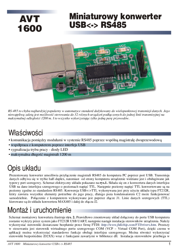 AVT478 AVT1600 Miniaturowy konwerter USB - RS485