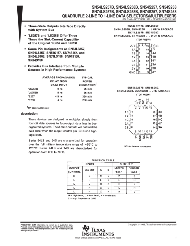 74LS257B, 74S257, 74S258, SN74LS257, SN74LS258, SN74S257, SN74S258