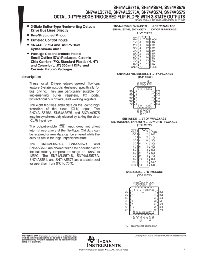 74AS574, 74ALS575, 74AS575, SN74ALS574B, SN74AS574, SN74ALS575, SN74AS575
