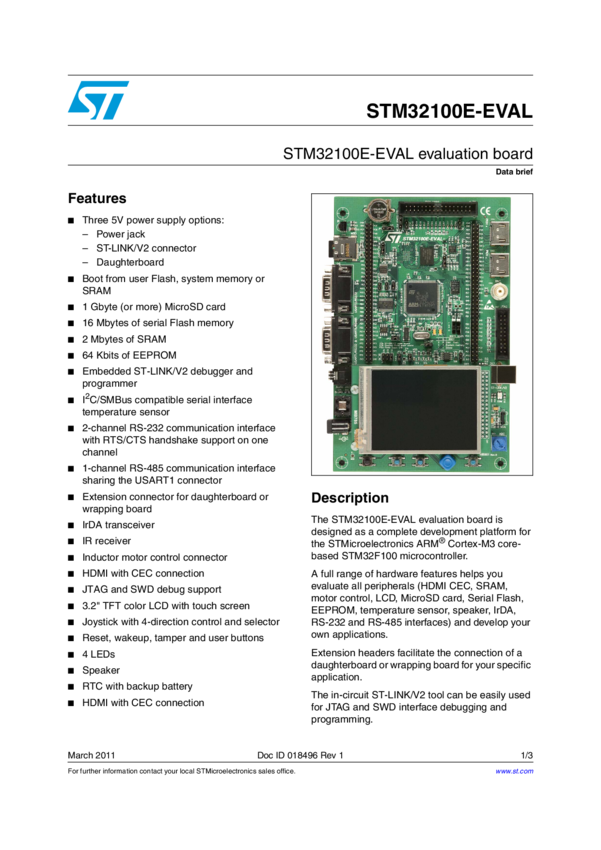 STM32100E-EVAL Evaluation board with STM32F100ZE MCU