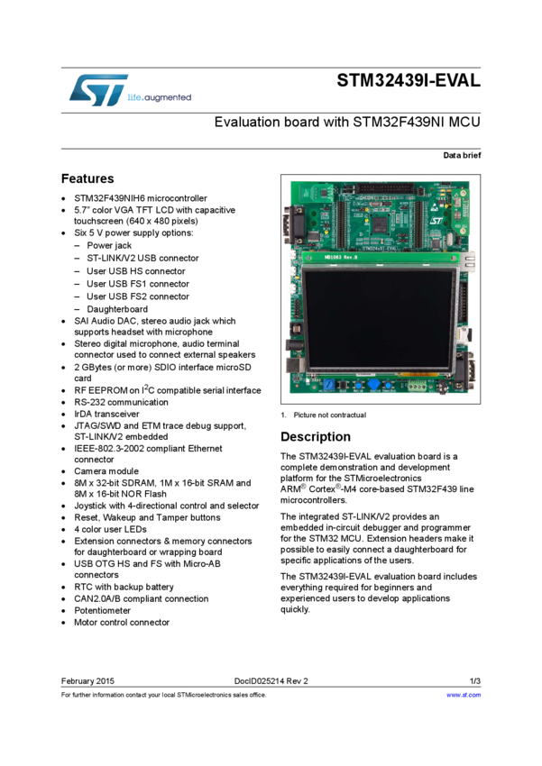 STM32439I-EVAL Evaluation board with STM32F439NI MCU