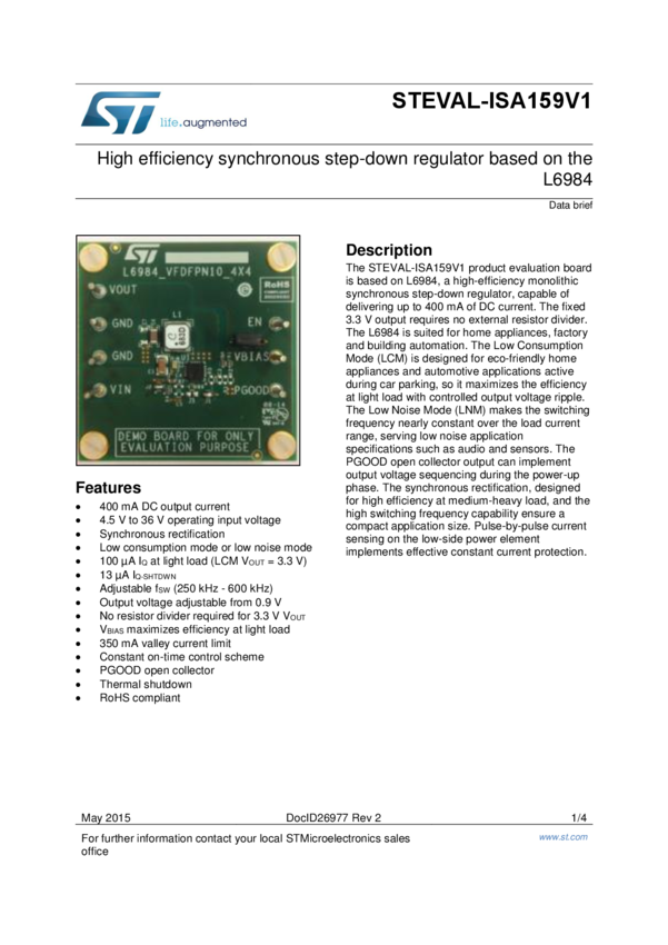STEVAL-ISA159V1 High efficiency synchronous step-down regulator based on the L6984