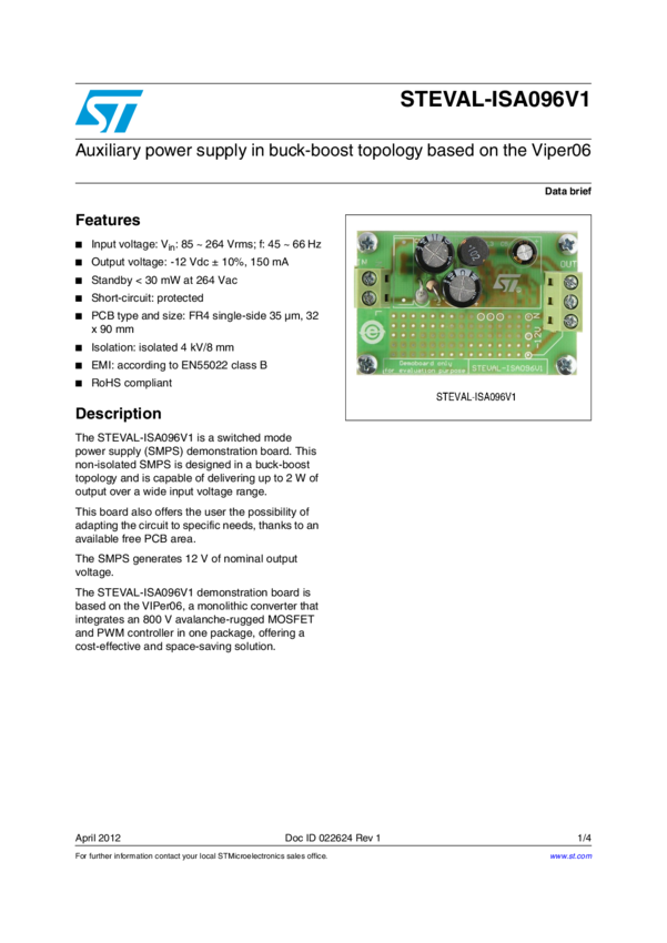 STEVAL-ISA096V1 Auxiliary power supply in buck-boost topology based on the Viper06