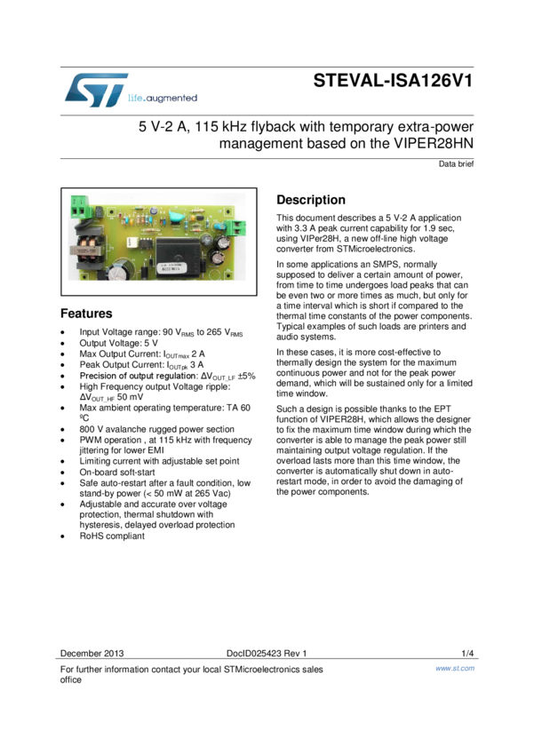 STEVAL-ISA126V1 5 V-2 A, 115 kHz flyback with temporary extra-power management based on the...