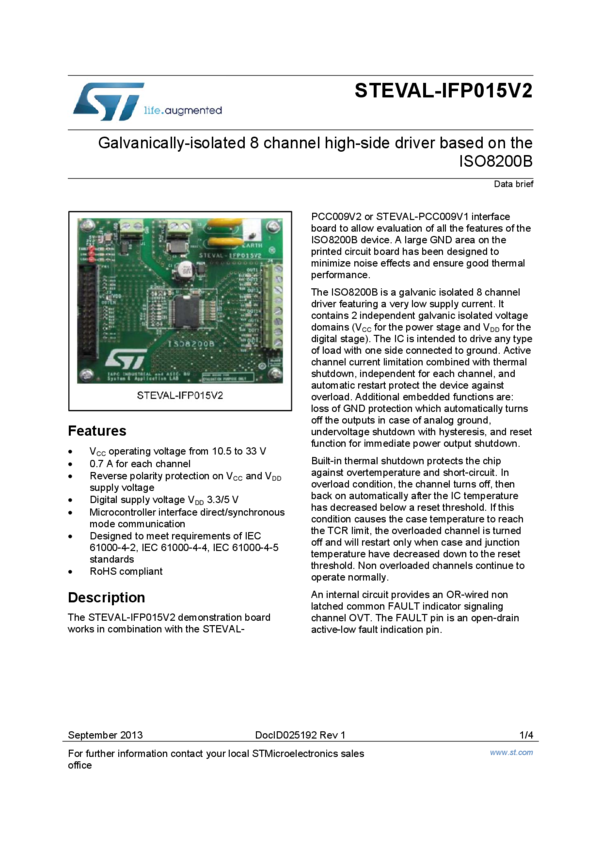 STEVAL-IFP015V2 ISO8200B High Side Driver - 8 Channels evaluation board