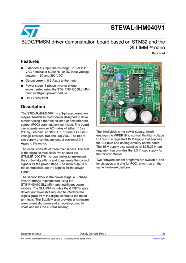 BLDC/PMSM driver demonstration board based on STM32 and the SLLIMM nano™