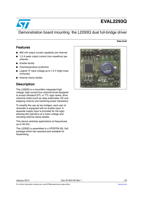 EVAL2293Q L2293Q push-pull four channel driver with integrated diodes evaluation boar...