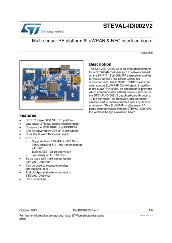 STEVAL-IDI002V2 Multi-sensor RF platform - 6LoWPAN and NFC interface Board