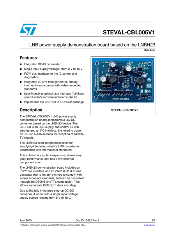 STEVAL-CBL005V1 LNB power supply demonstration board based on the LNBH23