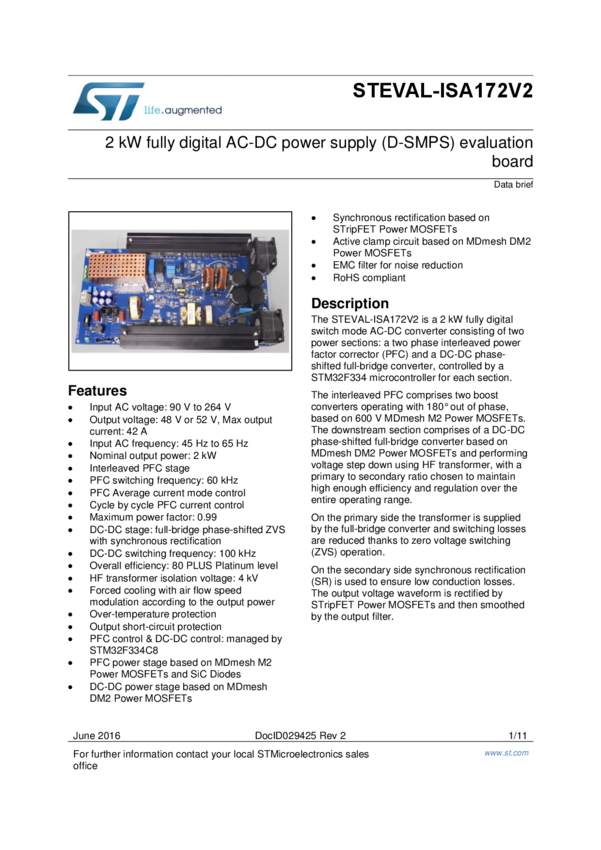 STEVAL-ISA172V2 2 kW fully digital AC-DC power supply (D-SMPS) evaluation board