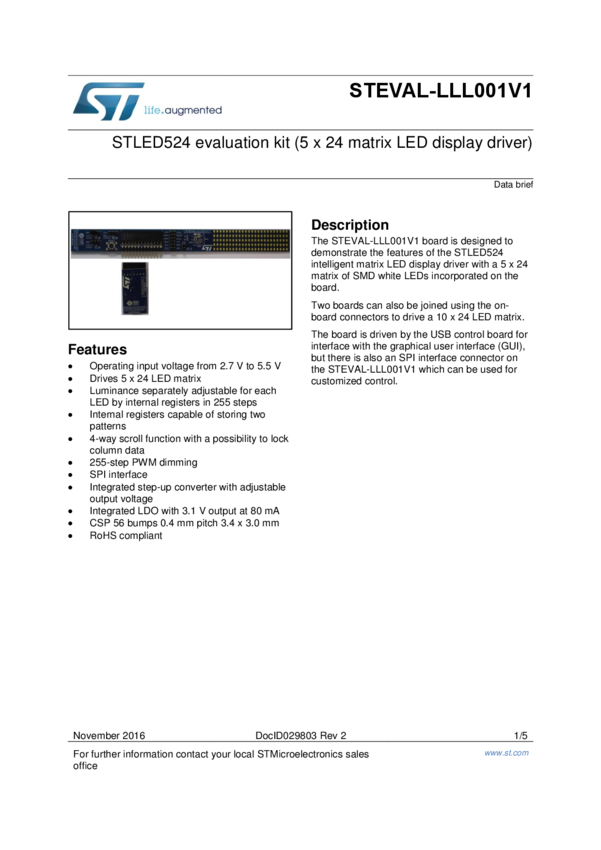 STEVAL-LLL001V1 STLED524 evaluation kit (5 x 24 matrix LED display driver)