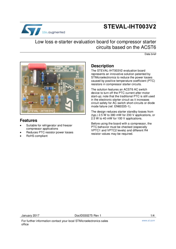 STEVAL-IHT003V2 Low loss e-starter evaluation board for compressor starter circuits based o...