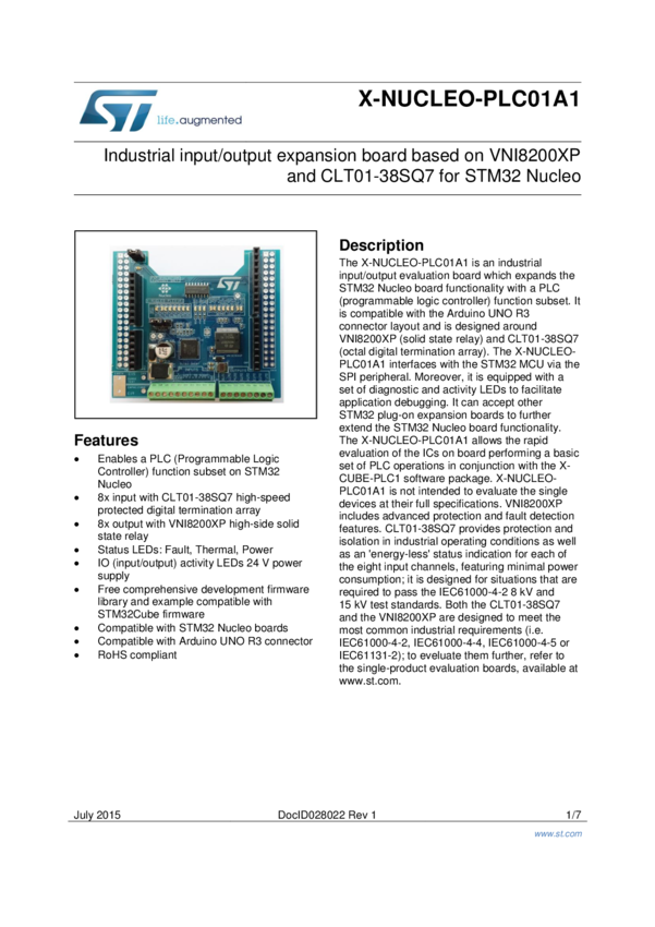 X-NUCLEO-PLC01A1 Industrial input/output expansion board based on VNI8200XP and CLT01-38SQ7...