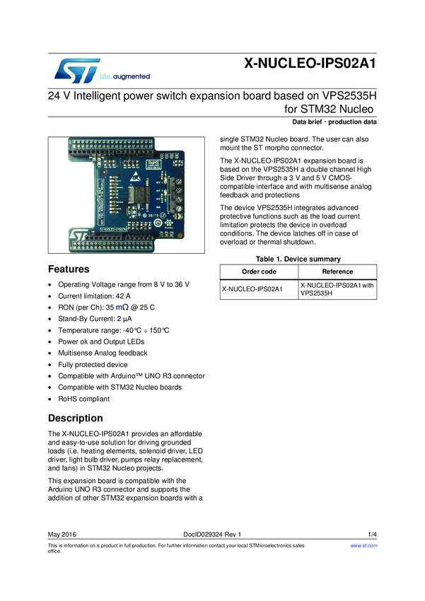 X-NUCLEO-IPS02A1 24V Intelligent power switch expansion board based on VPS2535H for STM32 Nu...