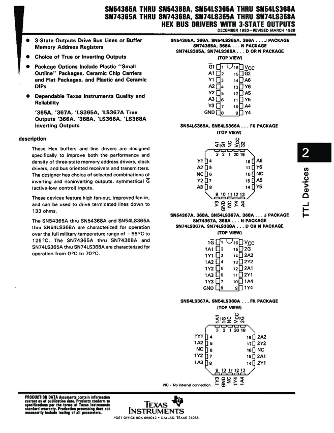 74365, 74LS365A, 74366, 74LS366A, 74367, 74368, 74LS368A, SN74365, SN74366, SN74367, SN74LS365, SN74LS366, SN74LS367, SN74LS368