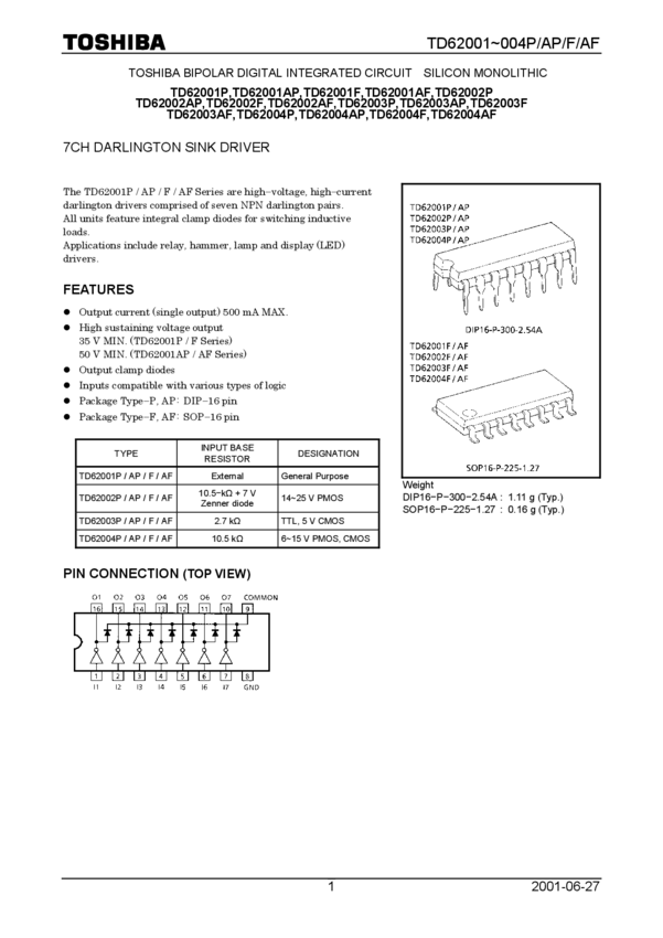 TD62001P/AP/F/AF, TD62003P/AP/F/AF, TD62004P/AP/F/AF