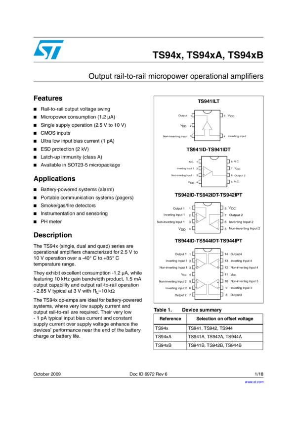 TS942 Ultra-micropower amplifier with CMOS inputs