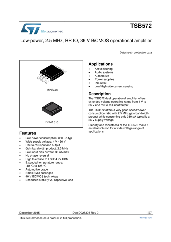 TSB572 Low-power, 2.5 MHz, RR IO, 36 V BiCMOS operational amplifier