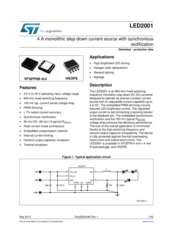 LED2001 4 A monolithic step-down current source with synchronous rectification