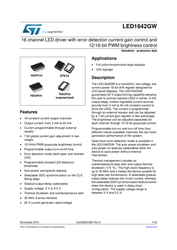 LED1642GW 16 Channels LED driver with Error detection, Current Gain Control and 12/16...