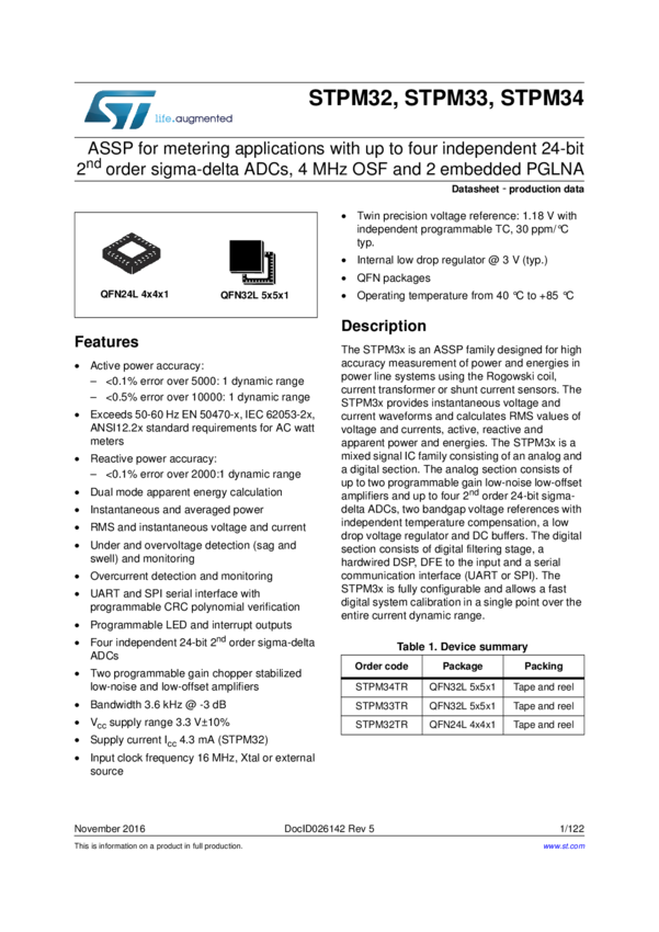 STPM33 ASSP for metering applications with up to four independent 24-bit 2nd order...