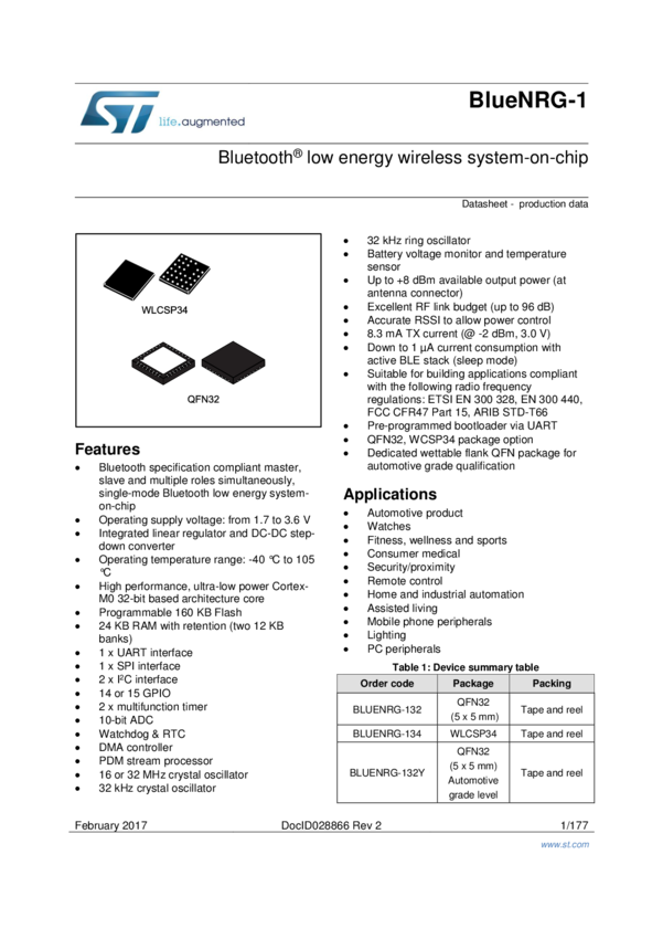 BLUENRG-1 Bluetooth Low Energy System On Chip